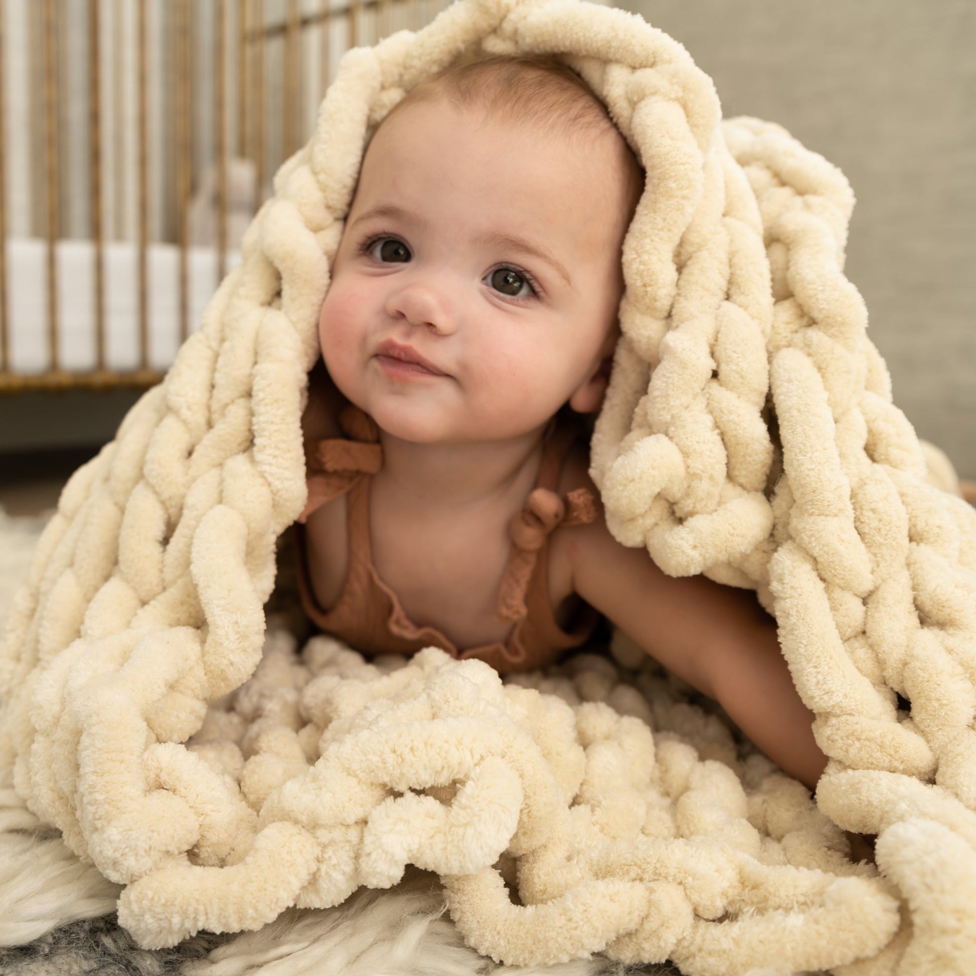 Buttercream 50x30" Chenille Chunky Knit Lap Blanket or Baby Blanket