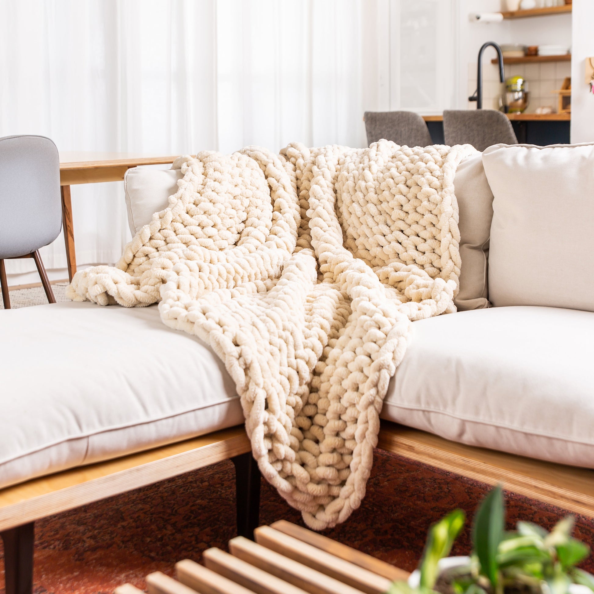 Buttercream 50x60" Chenille Chunky Knit Blanket