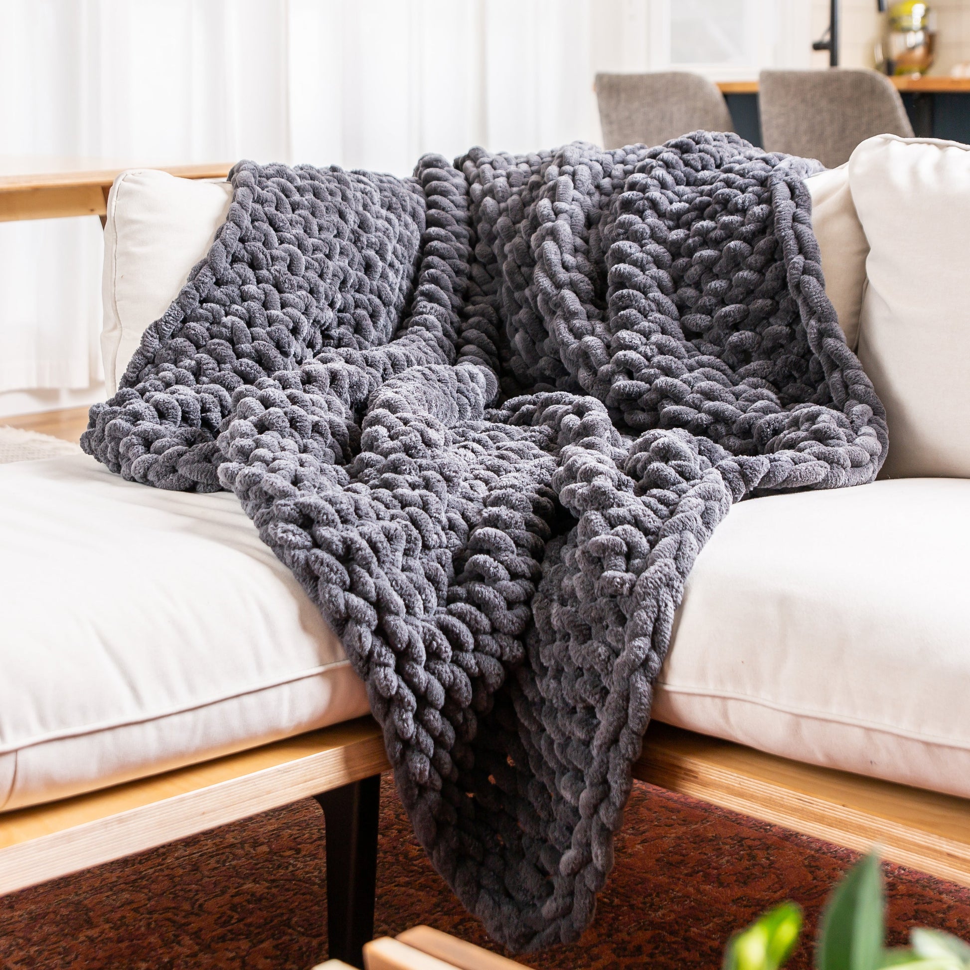 Graphite 50x60" Chenille Chunky Knit Blanket