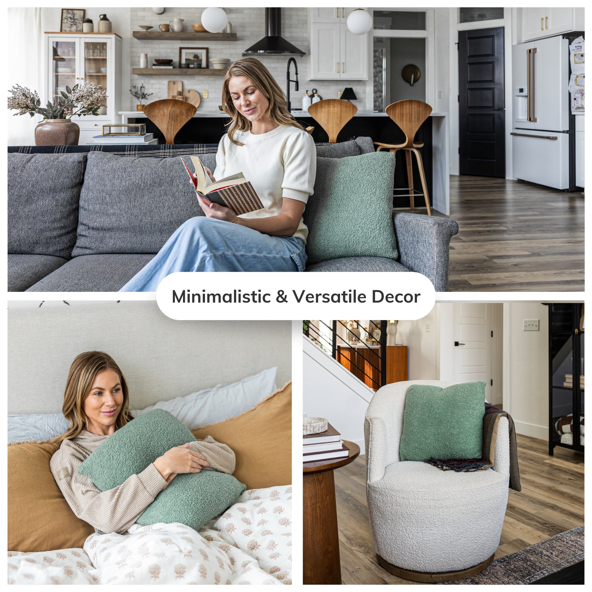 Sage Teddy Boucle Throw Pillow Covers, size 20x20", 2-Pack